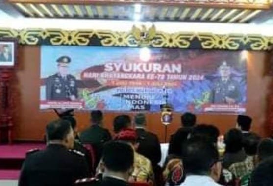 Insideborneo.com, Puruk Cahu – Polres Murung Raya (Mura) melaksanakan Syukuran dalam rangka memperingati Hari Bhayangkara Ke-78. Acara berlangsung di aula Cahai Ondhui Tingang (Gedung B) kantor Bupati Mura, Senin (1/7/2024) acara ini di hadiri oleh Pj Bupati Mura, Hermon beserta jajarannya.