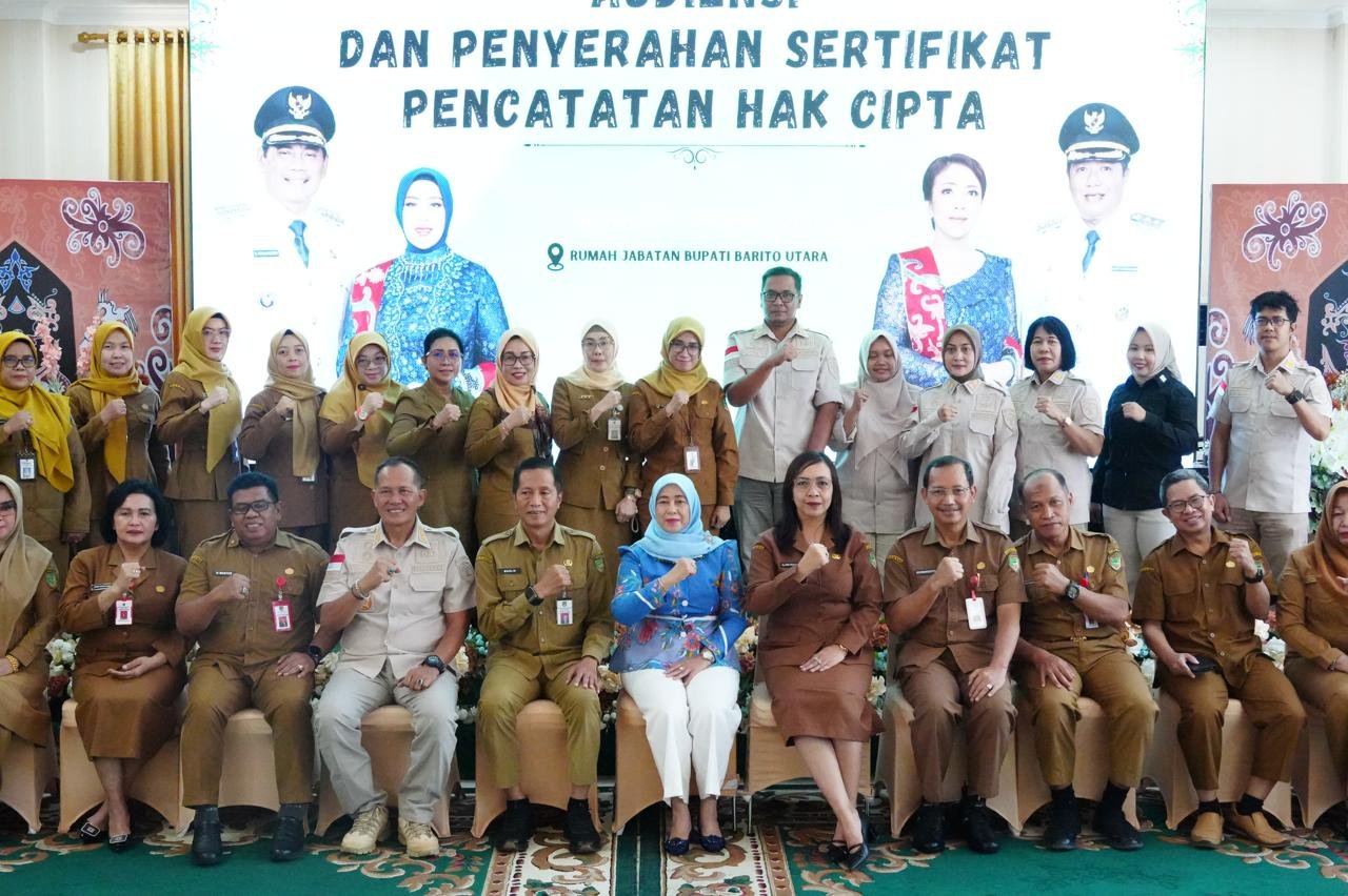Insideborneo.com, Muara Teweh – Ketua Dekranasda Kabupaten Barito Utara, Hj. Maya Savitri Shalahuddin, menerima Sertifikat Pencatatan Hak Cipta langsung dari Kementerian Hukum dan HAM RI. Acara penyerahan berlangsung di Rumah Jabatan Bupati Barito Utara pada Selasa (3/2/2026), dalam kegiatan Audiensi dan Penyerahan Sertifikat Hak Cipta.