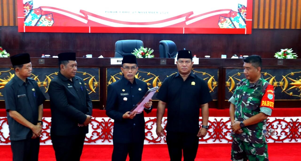 Di ruang Paripurna DPRD Murung Raya (Mura), agenda rapat kali ini adalah penyerahan materi Rancangan Peraturan Daerah (Ranperda) tentang Rancangan Anggaran Pendapatan dan Belanja Daerah (RAPBD) Tahun Anggaran 2025.